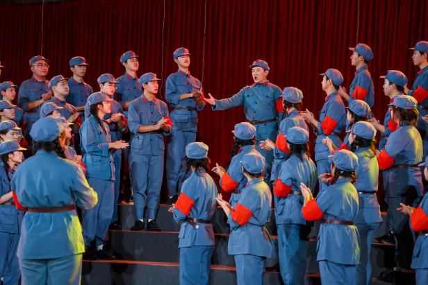 “大雪呀纷飞呀,为我洗征尘...”战斗打响时大雪纷飞,一位身背斗笠大刀的老红军从南方长途跋涉而来。《祝捷》歌曲开头,合唱队员们以高昂奋进的节奏唱响红军不怕远征难的刻苦乐观的精神。“长途跋涉足未稳哪...直罗满山炮声急呀...”合唱队员们与领唱相互协作,配合默契,将红军积极进取、追求胜利的精神面貌生动展现。“胜利完成奠基礼呀啊,军民凯歌高入云哪。”陕北直罗镇战役的胜利,是红军在陕北站稳脚跟的奠基礼。歌曲最后,合唱队员们一同唱响红军长征谱写豪情万丈的精神史诗。一代人有一代人的长征,通院学子纷纷表示要传承革命之光,弘扬西电精神,拼搏奋进走好自己的长征路。