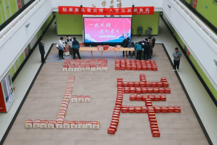 活动现场精心准备了380份考研大礼包,礼包内既有学子们考试所必须的文具,又有充满寓意的礼物。其中,定胜糕蕴含着必胜的信念,鼓励考生们坚定信心,战胜一切困难,一战成“硕”;脐橙寓意“脐”开得胜,心想事“橙”;金榜题名袜子寓意脚踏实地,迈向成功之路;乐事薯片寓意从容应对,天天“乐事”;钥匙扣上的好“柿”发生、一举夺“葵”等字样也寄托着学院对考研学子的祝愿……一份份礼包排成大大的“上岸”两字,寄托着学院对考研学子们旗开得胜,成功“上岸”的深切祝福。