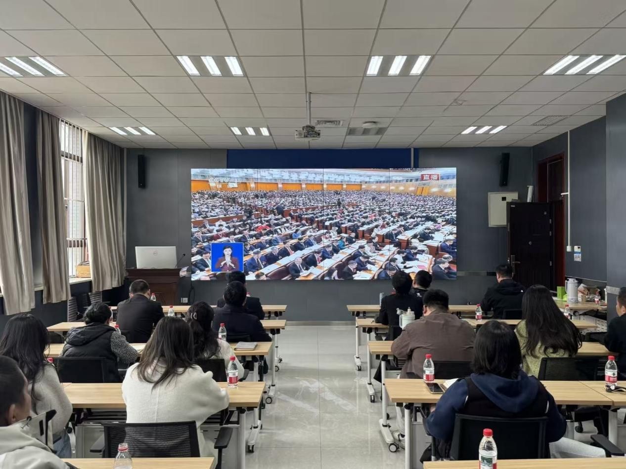党委组织师生及机关人员,通过多种形式观看收听开幕会,认真聆听政府工作报告,积极分享交流学习体会,汲取两会精神力量。