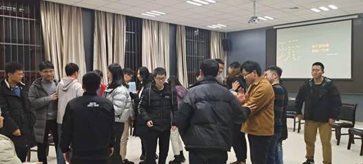 接下来就到了有趣的游戏环节,模拟真实的人际关系场景。老师让所有同学闭上眼睛,站起来向前走,但是不能发出声音。同学们面临选择,是继续待在自己熟悉的人身边,还是选择远离自己的舒适区走向其他地方与陌生人接触。这个游戏一共进行了两轮,第一轮的时候大家都较为拘谨,游戏进行到第二轮,大家逐渐放松下来,开始与其他人进行交流。通过这个游戏,同学们渐渐的愿意去认识陌生的人,克服了一开始的羞涩与胆怯。