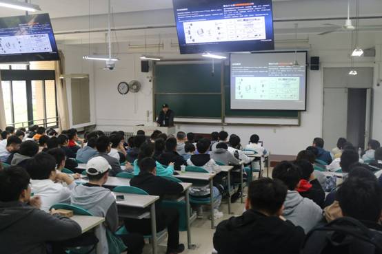 接下来,《系统项目设计企业实战课堂》校企沙龙活动在西电南校区B栋教学楼106教室正式开始。由线上参与与线下讨论组成,线上参与学习由“学在西电”平台进行现场直播,通院大二所有学生,约700人,线下现场互动由通院大三中英班,大一大二卓越班约150人。