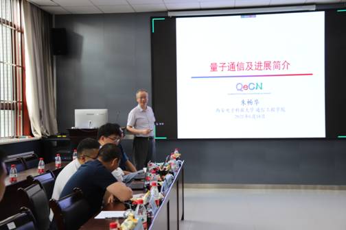 随后朱畅华老师作了题为“量子通信及进展简介”的报告,主要讲述了量子通信的概念、理论基础、典型协议与实现,介绍了量子信息的实际安全性、研究与应用现状以及发展展望,最后展示了实验室当前相关的研究工作。随后就量子通信系统的性能、量子通信信道,以及量子秘密共享等相关问题进行了交流。