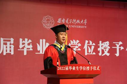 李云松在寄语中代表学院向顺利完成学业的2022届本科毕业生表示祝贺,他回顾了毕业生同学们四年的生活点滴,他表示作为学院的院长、同学们的师长,看见同学们取得的成绩,他发自内心为同学们感到自豪。李云松对毕业生提出四点希望:一是要艰苦奋斗,保持吃苦在前、拼搏在先的斗志。把西电精神转化为传承、弘扬、践行社会主义核心价值观的具体行动,脚踏实地地承担起历史的重任,勇做走在时代前列的奋进者、开拓者、奉献者,让青春在为祖国、为人民、为民族的奋斗中实现价值。二是要自强不息,锤炼逢山开路、遇河架桥的意志。面向未来,希望同学们——顶天,敢与高者攀;立地,敢与强者拼。以矢志奋斗的决心、坚韧不拔的意志、持之以恒的努力,“逢山开路、遇水架桥”,书写无悔人生。三是要求真务实,砥砺坚忍不拔、不骄不躁的品质。希望同学们以“板凳一坐十年冷”的淡定和执着,坚忍不拔、不骄不躁,在试错探索中奋力前行,在携手并进中追逐梦想。四是要爱国为民,传承全心全意为人民服务的担当。希望同学们,不论身处何方、从事何种职业,都要始终把党和国家、把社会和人民放在最重要的位置,把个人的理想追求融入国家和民族事业中,书写无愧于时代的青春之歌!最后,李云松深情寄语,表示通院永远张开双臂欢迎同学们常回家看看。