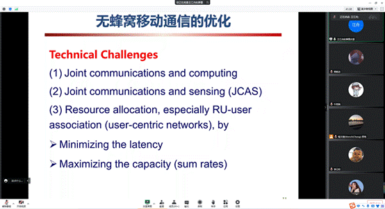 接下来,王院士就无蜂窝移动通信的演进与优化给大家进行了深入的讲解。基于目前5G应用单一的问题,未来6G可用于车联网、元宇宙以及工业物联网等。基于原始的无蜂窝网络存在着云计算延迟大、前传开销大的问题,提出了分布单元和边缘计算的方法,同时提出了对通信和计算进行联合优化,对通信和感知进行联合优化,最终发现无蜂窝网络能够有效地减少时延。