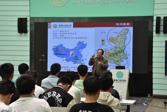 在“大美陕西秦风秦韵”部分,卢朝阳结合自己近期的研究,通过丰富的图片素材从多角度对陕西的民俗、民歌、秦腔等珍贵的文化宝藏进行了介绍。陕西的历史文化、人间百态、风土人情引人入胜,绘声绘色地讲述给在场的同学留下了深刻的印象。