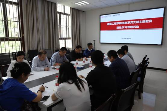 党委书记魏峻、校主题教育联络组第一组成员张卫东和全体信息工程系党支部支委及党员代表参加了学习活动,会议由信息工程系党支部书记孙蓉主持。