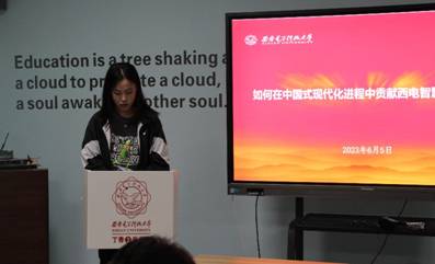 曹思宇同学表示,我们既要传承老一辈西电人的“西电精神”,又要清晰地认识当下的时代坐标,以沉稳自信的姿态接过时代的接力棒,着眼脚下、放眼未来,有计划、有选择地把握好青春的方向盘。努力提高科学文化素养、全面发展,让自身专业能力的复合性得到不断提高,在中国式现代化进程中更好地贡献自己的西电智慧和西电力量。