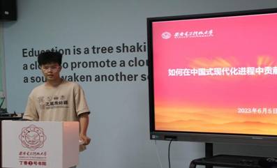 在交流讨论环节,同学们围绕重点发言纷纷表决心、立目标,承诺要坚定“以科技报校,以科技报国”的信念,攀登科学顶峰,不断提升专业知识,以更开阔的眼界思路、更自信的创新意识和勇于“揭榜挂帅”的魄力做科研,以青春之我,贡献伟大时代,贡献于中国式现代化进程。充分体现西电毕业生“艰苦奋斗,自强不息,求真务实,爱国为民”的西电精神。