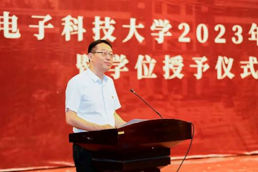 魏峻代表学院向顺利完成学业的2023届研究生表示祝贺。他充分肯定了同学们在通院求学期间的成绩和提升。他指出,本届研究生的求学之路极不平凡,既见证了中国共产党成立100周年盛大庆典的恢弘时刻,第一个百年奋斗目标实现和全面小康社会的建成,也在抗击疫情的伟大战役中或默默承担,潜心科研,或挺身而出,勇毅前行,与学院“通”心同行,共克难关。魏峻对毕业生同学们提出了三点期望:一是要忠于祖国,坚定理想信念,将个人理想与使命融入祖国与时代,牢记通院人的责任与担当;二要矢志创新,赢得历史主动,做新时代“科学的千里眼、顺风耳”;三要辩证思考,坚持系统观念,既要保持打破砂锅问到底的求真精神,更要养成辩证灵活的思考习惯,综合地、精准地分析研究问题,谋划指导自己的人生。最后,魏峻希望同学们在未来要继续发扬西电精神,充分展现“通院人”的底蕴风采,并欢迎同学们常回母校看看。