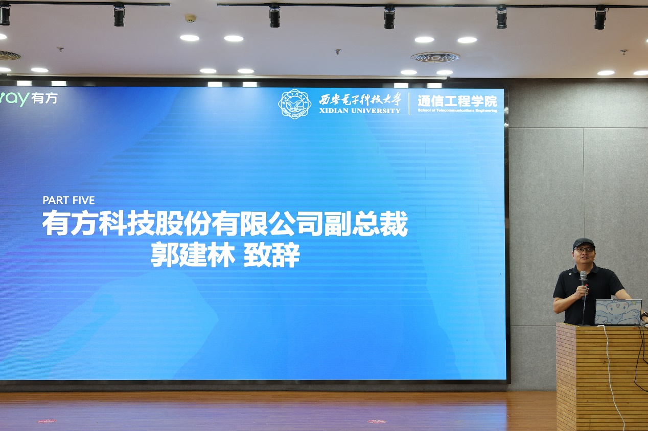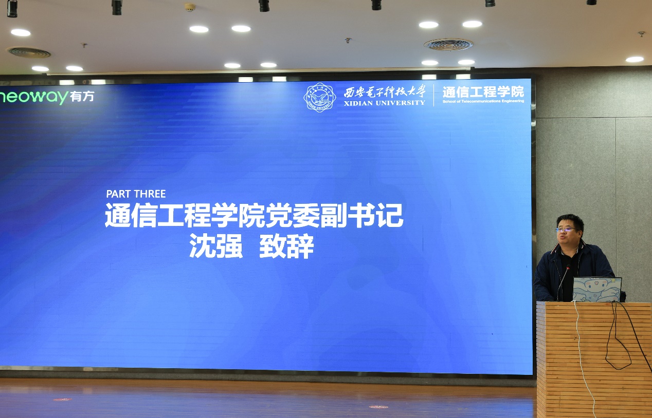 沈强代表学院向有方公司和到场嘉宾表示热烈欢迎和衷心感谢,并向进入决赛的15组选手表示祝贺。回顾过去校企携手合作的十三年,大赛累计吸引万余名本科生参与其中,评选出一百余项优秀作品,其中多项获奖作品在后续的省级、国家级的各类科创比赛中取得优异成绩。学院将继续深化大学生科创能力培养体系,以赛促赛,加强与有方公司的校企合作交流,实现优势资源共享。郭建林代表有方公司表示,很高兴看到“有方杯”连续举办十二届,他希望在以后的比赛中,本科生选手能够结合大赛主题,聚焦社会热点难点问题,大胆创意,提出智慧的解决方案,注重培养实践动手能力,希望研究生选手更加关注系统设计以及算法性能,更倾向以项目商业化落地为目的。最后,他特别感谢十三年以来学校和学院对有方科技公司的支持与厚爱,希望在更多领域与学院开展合作。