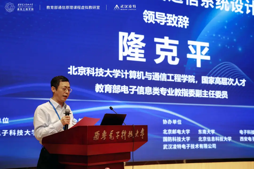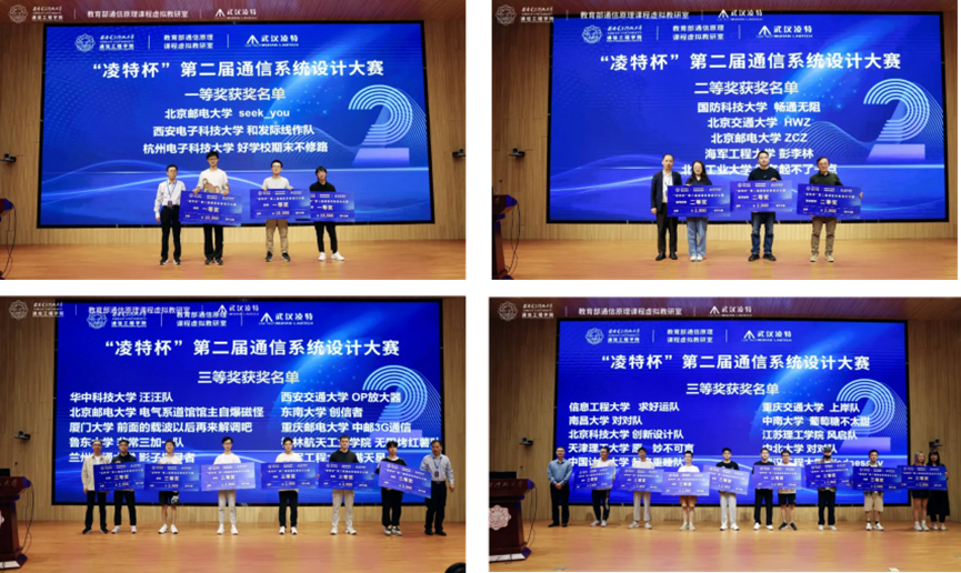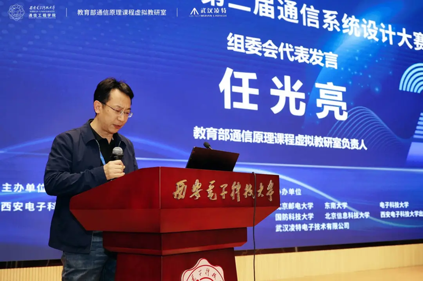 副院长顾华玺教授,西安交通大学电子与信息学部副主任罗新民教授,西北工业大学电子信息学院副院长姚如贵教授,东南大学通信技术研究院常务副院长宋铁成教授,北方工业大学信息学院电信实验中心主任白文乐教授,教育部通信原理课程虚拟教研室负责人任光亮教授,武汉凌特电子技术有限公司董事长沈瑞华先生,大赛评委及参赛师生们出席了本次颁奖典礼。